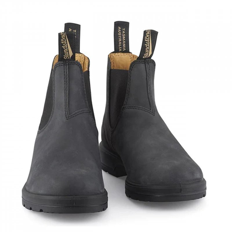 Die Chelsea Boots 587 Classic von Blundstone sind hochwertig verarbeiteten und bieten den Komfort und die Bequemlichkeit eines Lederschuhs. Die Schuhe aus vollnabigem, braunem Rindsleder sind leicht und robust und geht mit Ihnen durch dick und dünn. Ob im Alltag oder draußen mit dem Hund in Wald und Feld, der 587er lässt Sie nicht im Stich. Dank dem dunklem anthrazit und dem schwarzen Finish entsteht eine wunderschöne Two Tone Optik. Somit ist schwarz hier nicht gleich schwarz! Die klassische Form der Stiefel mit den seitlich an den Fußgelenken eingesetzten Gummibändern passt perfekt zum eleganten, aber auch lässigen Look. Die angeschäumte PU/TPU Sohle dämpft Ihre Schritte und macht die Boots federleicht und superbequem Das Fußbett ist herausnehmbar. Ein vielseitiger Schuh, der in Ihrer Garderobe nicht fehlen sollte.