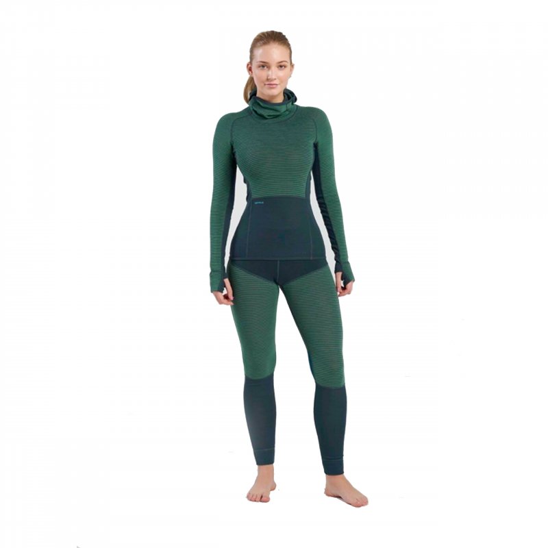 Der Tuvegga Merino Hoodie ist ein wärmender Baselayer. Dieser wurde für intensive Aktivitäten entwickelt bei denen Isolierung sowie die Regulierung der Körpertemperatur wichtig sind. Er eignet sich daher für alle möglichen Wintersportarten, wie Skifahren, Schneewandern oder für alpine Hochtouren. Abseits der Berge kann der Tuvegga Merino Hoodie Wmns aber auch im Alltag oder beim Joggen als wärmende Unterschicht getragen werden. Er besteht hauptsächlich aus Merinowolle mit einem Hauch Elasthan für eine verbesserte Funktion. Der Clou an diesem Oberteil ist, dass man es wenden kann und somit unterschiedliche Isolierungseigenschaften erhält. Die flache Oberfläche bietet einen effizienten Feuchtigkeitstransport und eine hohe Atmungsaktivität beim Tragen auf der Haut. Wenn mehr Isolierung erforderlich ist, dreht man das Shirt um, sodass die 3D-Gewebekonstruktion mit Luftkanalstrick zusätzliche Isolierung erzeugen kann. Dieser elastische und isolierender Rippenstrick ist sehr weich und kann zudem Feuchtigkeit aufzunehmen und Sie während der Aktivität möglichst trocken zu halten. Die Rückseite, der vordere Hüftbereich sowie die Arminnenseiten bestehen aus einem glatten 190 g/m² Gewebe. Das Obersteil ist mit Flachnähten versehen, sodass keine unangenehmen Reibungspunkte entstehen können, außerdem wurden die Schulter und Seitennähte versetzt. Zu guter Letzt verfügt der Tuvegga Merino Hoodie noch über eine anatomisch geformte und helmtaugliche Kapuze. Das Shirt besitzt eine körpernahe Passform, ist jedoch super elastisch und bietet daher eine optimale Bewegungsfreiheit für all Ihre Aktivitäten.