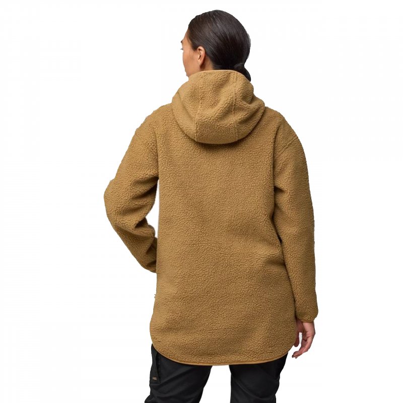 Die Vardag Pile Fleece Long von Fjällräven ist eine warme und bequeme Kapuzenjacke, die in der kalten Jahreszeit für Wohlbefinden bei In- und Outdoor Aktivitäten sorgt. Das doppellagige Teddyfleece der oberschenkellangen Jacke außen ist weich und strukturiert. Im Inneren ist die Jacke mit flach gestricktem Jersey ausgestattet. Hinter dem durchgehenden 2-Wege Frontreißverschluss mit Kinnschutz, der bis in den Stehkragen hochreicht, befindet sich eine Windschutzleiste im Inneren. Zwei seitliche, offene Einschubtaschen mit Mesh-Einsatz für die Hände und eine Brusttasche mit Reißverschluss gehören zur Ausstattung dazu. Das große Plus ist die Länge der Jacke, die über den Po und einen Großteil der Oberschenkel ragt und kalten Wind ebenso abhält wie die kuschelige Kapuze. Am unteren Saum ist die Jacke seitlich eingeschlitzt. Ob als Oberschicht bei milderen Temperaturen oder in der Skihütte oder als warme Mittelschicht unter der dicken Winterjacke - die Vardag Pile Fleece Jacket begleitet Sie durch die kalte Jahreszeit mit Wärme und Wohlbefinden.