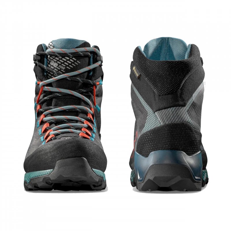 Der Aequilibrium Hike GTX von La Sportiva  ist ein wendiger und leichter Mid-Cut-Boot für Damen der sich in gemischtem Gelände am wohlsten fühlt, denn hier kann er zeigen was er kann. Dank der 100% wasserdichten GORE-TEX Extended Comfort-Membran trotzen die Schuhe auch Regen und Schnee und sorgen für trockene Füße. Ohne auf Schutz und Strapazierfähigkeit zu verzichten garantiert das synthetische Gewebe Leichtigkeit und Atmungsaktivität, auch durch die abriebfesten Einfassungen der am stärksten beanspruchten Stellen. Für natürliche Flexibilität und Beweglichkeit im Knöchelbereich sorgt das 3D Flex System Evo™, das auch Grip und Sicherheit auf jedem Terrain garantiert. Die Schuhe sind mit einem stabilen Schaft und einer abriebfeste Ummantelung zum Schutz vor Geröll und Stößen für den vielseitigen Geländeeinsatz und extreme Wetterbedingungen ausgestattet. Das Schnürsystem reicht bis weit an die Zehen, was für einen besonders guten Halt und Anpassung sorgt, da der Oberschuh die Füße perfekt umgreift. Die Sohle besteht aus verschiedenen Lagen wobei eine außergewöhnliche Gehbarkeit dank der innovativen Double Heel erreicht wird. Hierbei sorgt die ausgeprägte Hinterachse-Geometrie für eine erhöhte Bremswirkung beim Bergab laufen, wodurch auch die Muskelermüdung reduziert wird. Die hochwertige und abriebfeste Vibram-Laufsohle mit Impact Brake System sorgt für Dämpfung beim Aufprall, Gripp und Halt, egal auf welchem Untergrund Sie sich befinden.
