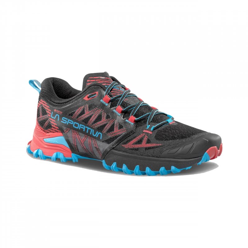Die Bushido III GTX von La Sportiva sind schon seit Jahren die perfekte Wahl für die Welt des Skyrace. In der wasserdichten GTX Variante können Sie Ihrem Hobby auch bei Regen und Schnee nachgehen. Der Bushido III GTX verfügt über eine hochwertige, wasserdichte Gore-Tex Membran, welche zugleich auch atmungsaktiv ist und für ein sehr angenehmes Fußklima sorgt. Das Obermaterial mit Slip-on-Konstruktion auf der Innenseite umschließt den Fuß wie eine Socke ohne ihn zu komprimieren oder Druckstellen zu erzeugen. Die skelettähnliche TPU-Struktur, welche bis zur Zwischensohle reicht, sorgt für besonders viel Halt und Stabilität im Mittelfußbereich. Der Schuh liegt im diesem Bereich eng an und stützt auf diese Weise das Fußgewölbe. Die Sohle FriXion Red Bi-Compound zeichnet sich durch differenzierte Kontaktflächen aus, die maximalen Gripp auf allen Arten von Gelände gewährleisten. Im Zehenbereich bleibt die Sohle leicht flexibel ist aber insgesamt sehr verwindungssteif. Die Laufsohle verfügt über differenzierte Aufstellflächen, seitliche Stollen mit abgerundeter Form schaffen dabei einen progressiven Aufstellwinkel zum Terrain und sorgen somit für Stabilität, auch wenn der Fuß nach außen gedreht wird. Daher sind die Trailrunningschuhe auch ideal für schwieriges Terrain mit Wurzeln, Steinen und Ästen geeignet. Dem Design ist La Sportiva treu geblieben und so behält der Bushido III GTX Women seinen hohen Wiedererkennungswert und sein cooles Design.