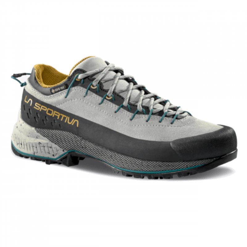 Der TX4 Evo ST W's von La Sportiva ist ein vielseitiger Sportschuh, der nicht nur optisch ein Hingucker ist. Für eine hervorragende Atmungsaktivität sorgt das synthetische Obermaterial, während die EVA-Zwischensohle optimalen Schutz und Dämpfung für heikle Passagen und Klettersteige bietet. Das weit nach vorne laufende Schnürsystem bietet die Möglichkeit den Sitz präzise anzupassen, wodurch optimaler Halt im Schuh gewährleistet ist. In Kombination mit der Vibram® MegaGrip-Verbundsohle mit dem patentierten Sohlenmuster des Impact Brake Systems™ zeigt sich die Stärke des Schuhs, denn auf schwierigen Anstiegen und rutschigen Abstiegen ist für höchste Stabilität und zuverlässige Traktionskontrolle gesorgt. An der Sohlenspitze befindet sich eine große Climbing Zone, die Genauigkeit und Halt beim Klettern und anspruchsvollen Passagen bietet. Ein Plus ist auch die spezielle Zwischensohle mit dem patentierten Resole Plattform™-Einsatz, durch den der TX4 Evo neu besohlt werden kann, ohne dass die technischen und komfortablen Eigenschaften beeinträchtigt werden. Die Zwischensohle aus kompressionsgeformtem EVA, sowie die herausnehmbare 4mm Ortholite® Hybrid Approach-Einlegesohle sorgen für ein hohes Maß an Dämpfung und Komfort. Der Schaft ist weich gefüttert und mit einem festen Kunstmaterial eingefasst, welches direkt in die Schnürung übergeht. Zum Schutz der Füße und für eine verbesserte Langlebigkeit sind die Schuhe außen mit einem Schutzrand eingefasst, der auch für gute Seitenstabilität sorgt. Zehen- und Fersenbereich sind dabei besonders verstärkt um vor Geröll zu schützen. Der TX4 EVO ST von La Sportiva bietet eine technische Ausstattung, mit der Sie schnell und sicher am Berg voran kommen, ohne auf Bequemlichkeit verzichten zu müssen.