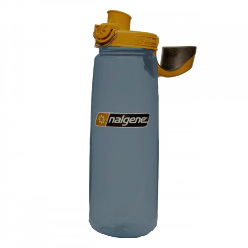 Die Nalgene On the Fly ist eine Kunststoff-Trinkflasche für sämtliche Outdooraktivitäten, das Fitness Studio, dem Yogakurs oder für die Schule. Sie ist Dank des Einhand-Verschlusses mit einem Druckknopf kinderleicht zu öffnen und durch eine große Öffnung auch einfach und schnell zu befüllen. Ein Metallbügel verschließt die Flasche sicher für den Transport. Die Flasche ist transparent, was den Vorteil hat, dass man gleich die Füllmenge erkennen kann. Diese Flaschen bestehen zu 50% aus recyceltem Material.