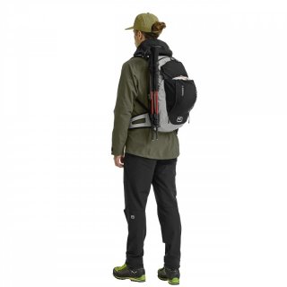Der Traverse Pure 20 von Ortovox ist ein funktionaler, Wanderrucksack und eignet sich perfekt für Tageswanderungen und Klettertouren mit einer überschaubaren Menge an Gepäck. Der Rucksack mit 20 Litern Fassungsvermögen sitzt nahe am Körper, bietet ein breites Spektrum an Einsatzmöglichkeiten bei einem geringen Eigengewicht. Das geräumige Hauptfach ist dank des U-förmigen Reißverschlusses leicht zu erreichen und bietet Stauraum für Wechselkleidung, Proviant oder die Boulder-Ausrüstung. Auch ein Fach für die Trinkblase, sowie ein Reißverschlussfach und eine Emergency Card sind im Inneren vorhanden. Im oberen Teil der Vorderseite befindet sich ein weiteres Reißverschlussfach, sowie ein erweiterbares Netz für den Helm. Zwei seitliche Netze für die Trinkflaschen sowie Befestigungsmöglichkeiten für die Trekkingstöcke sind außerdem vorhanden. Auch eine wasserdichte Regenhülle im Fach an der Unterseite fehlt beim Traverse Pure 20 nicht. Das Comfort Contact Back System liegt eng am Rücken an, bietet aber dank mit Netzstoff und perforiertem Schaum überzogenen Rückenpads besonders viel Luftzirkulation. So trägt der Rucksack sich auch an warmen Tagen sehr angenehm. Die ergonomischen Schultergurte, sowie Hüftgurte sind stabil gearbeitet, anatomisch geformt und verfügen ebenfalls über eine atmungsfähige Polsterung. Sie sorgen für eine gleichmäßig Lastenverteilung auf Rücken und Hüfte und somit für einen ausbalancierten Tragekomfort. Einer der Hüftgurte verfügt außerdem noch über ein kleines Reißverschlussfach für Dinge, die Sie gerne griffbereit haben möchten. Dank der Kombination aus wiederverwendeten Materialien und ungefärbten Stoffen ist der Rucksack auch noch ein Gewinn im Punkto Zukunftsdenken. Das sportliche Design und die bergsportspezifischen Features machen den Traverse 20 zu einem echten Gewinn für Ihr Bergabenteuer.